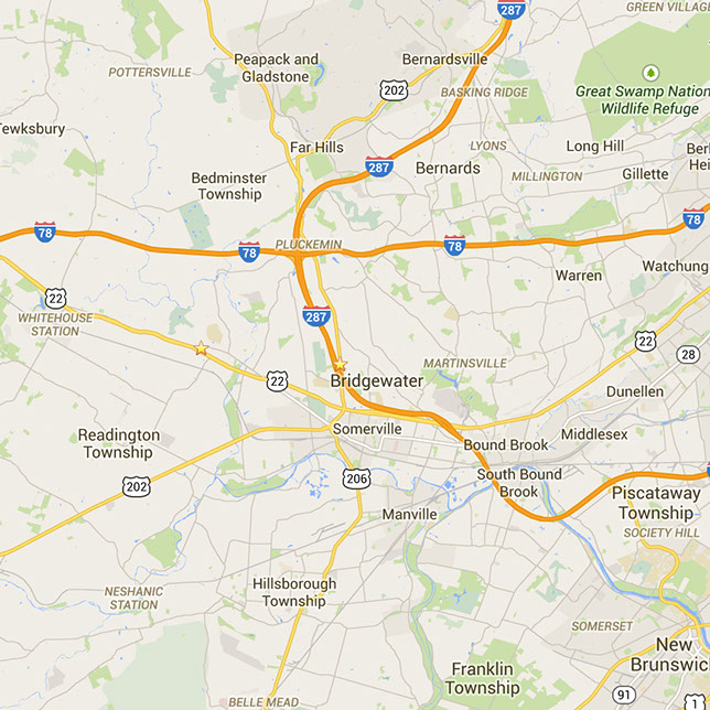 Click on the link below for interactive map of Branchburg - Bridgewater destinations.
